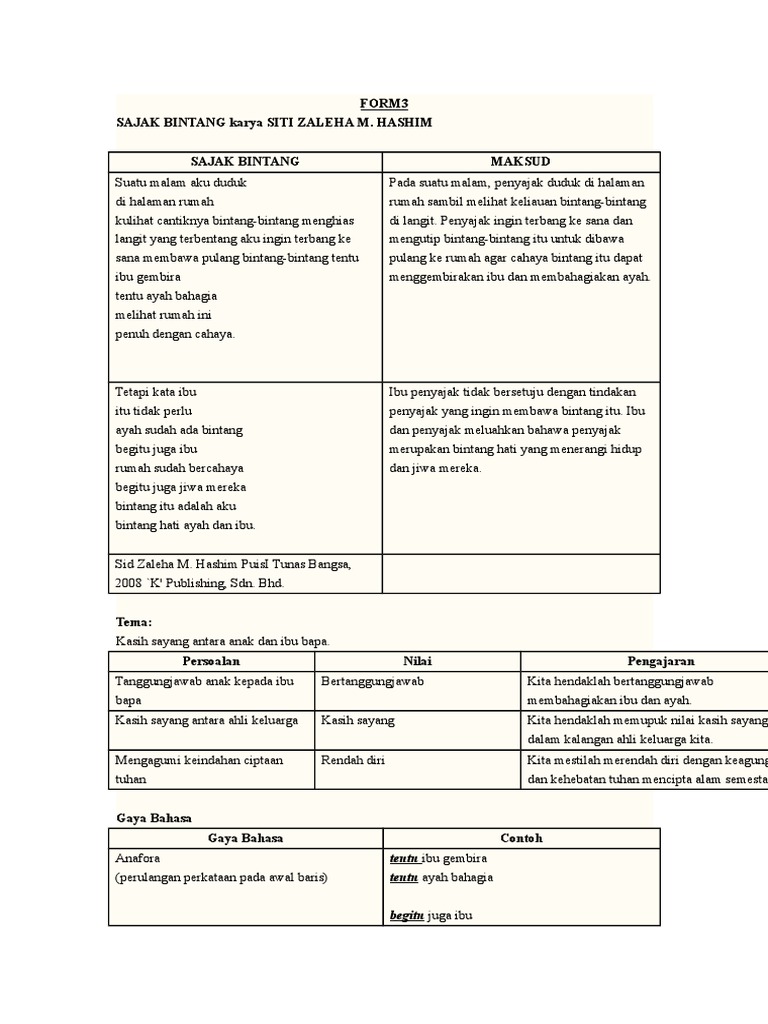 Related : Sajak Bintang Tingkatan 3 Gaya Bahasa / Bahasa melayu pt3, komsas pt3, antologi bintang hati, komsas tingkatan 3, komponen sastera tingkatan 3, soalan komsas tingkatan 3, nota komsas tingkatan 3, nota komsas pt3..