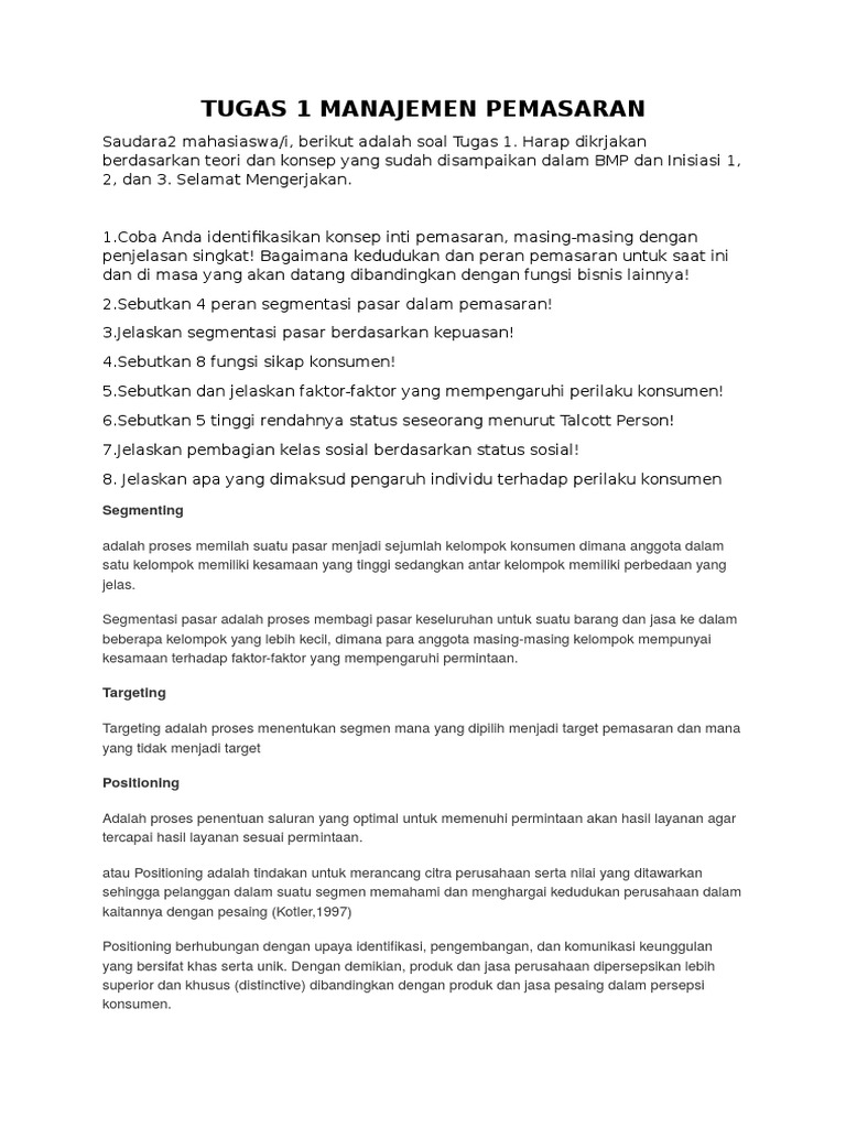 Jawaban tugas 1 perencanaan pemasaran from cdn.slidesharecdn.com Maybe you would like to learn more about one of these? We did not find results for: Check spelling or type a new query.